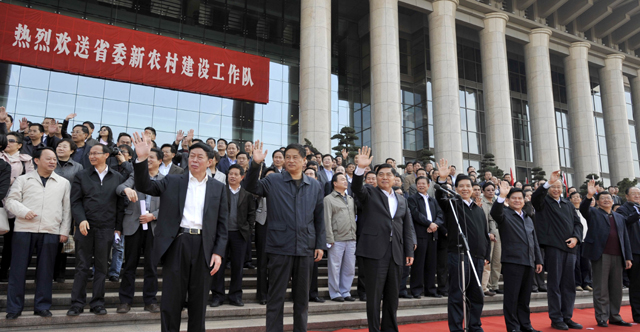 为认真贯彻落实云南省第九次党代会及省委、市委关于开展群众观点群众路线群众利益群众工作教育、实行干部直接联系群众制度工作的有关文件精神,Beat365官网借派驻新农村指导员之机,把进一步加强新形势下群众工作,深入农村和普通群众中,扩大交流和沟通,深化干群关系,促进农村科学发展、和谐发展、跨越发展与“四群”教育工作有机结合起来。今年,全省又派出2.3万名新农村建设指导员驻村开展帮扶工作。Beat365官网昆明科学发展研究院办公室主任、原第五批新农村建设工作队麻栗坡县总队长管彦平同志,仍续任麻栗坡县总队长。学校在各党总支(直属支部)推荐和本人申请的基础上,学校选派了6名新农村建设工作指导员。其中:经济学院党总支书记李跃波同志任昭通市水富县工作队总队长,职业技术教育中心副主任丁方同志任保山市隆阳区工作队队长,医学院政治辅导员耿明同志、保卫处干部祖治亮同志任保山市隆阳区工作队指导员,实习基地管理委员会助理讲师胡春凤同志任昭通市水富县指导员。