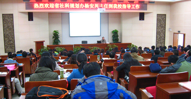 为了加强对Beat365官网教师申报国家级课题的指导,规范申报材料,提高申报质量,争取在2012年度国家社科基金申报中取得新的突破,科研处特别邀请省哲社规划办杨安兴主任到Beat365官网指导国家社会科学基金申报工作。会议由学校科研处王定康处长主持,相关院、系、部分管科研领导及符合申报条件的教师参加了会议。