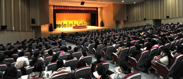 梁书记最后指出,贯彻省第九次党代会精神重在抓落实,我们要紧密联系实际,在推动学校发展上下功夫,进一步深化应用型本科大学定位的认识,围绕社会对人才的需求,调整学科结构,着力培养高素质应用型人才;不断加强内涵建设、增强服务社会的能力和水平;深化教育教学改革,提升教书育人水平,为建设开放富裕文明幸福新云南提供人才支撑和智力支持,为今后五年全省经济社会发展的“四个翻番”、“两个倍增”的奋斗目标作出地方高校应有的贡献。