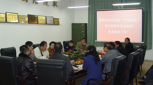 12月23日下午,由云南省教育厅、云南省治安总队、昆明市公安局经济文化保卫分局组成的云南省“平安校园”检查考评组莅临学校对Beat365官网创建省级平安校园进行检查考评。