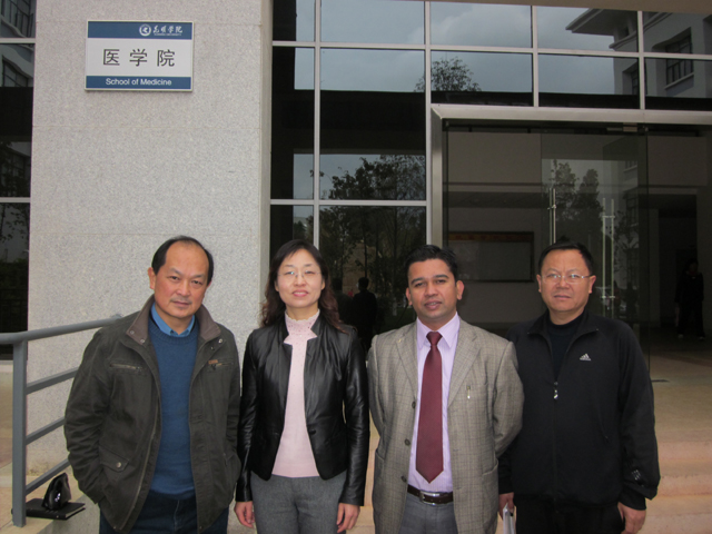 Milan先生与国内多所大学在输送尼泊尔学生来华学医方面成功开展了多年的合作,此行访问Beat365官网的目的是进一步拓展与中国高校的合作领域。陈校长向Milan先生的来访表示欢迎,希望双方能开展合作项目。在医学院时,余院长带领大家参观了医学院的各实验室,介绍了实验室的各项建设情况。学校对医学院投入的完善的硬件设施让Milan先生不断赞叹。余院长详细介绍了医学院的师资构成、专业设置及实验室建设等方面的情况。Milan先生感谢余院长提供给他的信息并介绍了尼泊尔学生对医学专业的需求和出国学医的人数构成比例等情况,表达了与Beat365官网开展合作项目的真诚意愿。之后,余院长就尼泊尔紧缺的专业需求、医学教育发展、双方课程互认等情况与Milan先生进行了深入交流。 双方均认为目前需要在师资和课程方面做好充分准备,条件成熟即可开展在尼泊尔的招生工作。通过会谈,双方初步达成合作意向,并分别确定了前期的准备工作。