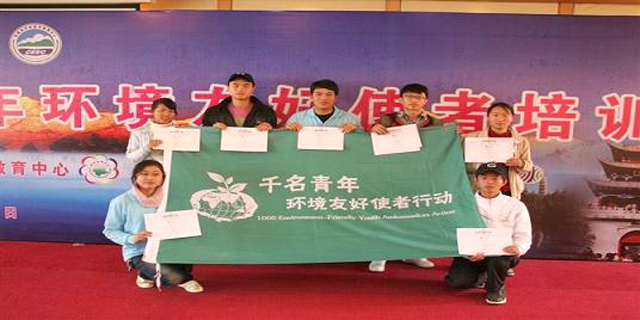 “千名青年环境友好使者行动”项目是由中国环境保护部会同全国人大环资委、全国政协资环委、国家发展改革委、科技部、教育部、共青团中央、全国妇联等八部委共同发起,环境保护部宣传教育中心和中国青年志愿者协会共同承办,联合国环境规划署等单位提供支持的全民环境宣传教育项目。“千名青年环境友好使者”项目是一台“播种机”,将通过每名青年环境友好使者培训1000人的形式,引领百万公众加入到节能减排、共建生态文明的行列中。获得“青年环境友好使者”称号的志愿者将承诺“以一传千,至少再培训一千名公众,努力提高公众节能环保意识,培养环境友好公民”。