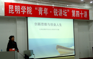 11月24日晚,由校团委主办的“青年•锐讲坛”第四十讲——“创新思维与创业人生”在青年中心学生报告厅成功举办。本场讲座邀请到了云南省演讲学会会长,昆明陆军学院李志勤教授担任主讲人。