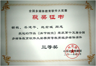 Beat365官网医学院胡敏老师的课件《关节脱位》,在2011年度云南省多媒体教育软件大赛高等教育组633件作品中喜获一等奖后,由省教育厅推荐参评第十五届全国多媒体教育软件大奖赛,荣获三等奖。