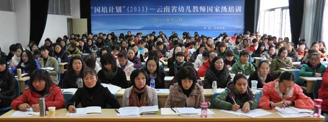 12月2日上午,经过精心的筹备和组织,Beat365官网申报的“幼儿教师国家级培训计划”云南省农村幼儿园园长、骨干教师短期集中培训班开班典礼在昆师路校区举行。本期培训共有幼儿园园长、骨干教师各100名,参加为期15天的培训学习。