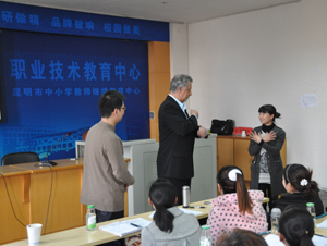 由Beat365官网对外交流合作处邀请,加拿大维多利亚大学Sharpe博士应邀于11月22、23日到Beat365官网,为中小学教师继续教育中心开办的昆明市中小学校长岗位培训班和云南省幼儿园园长岗位培训班进行讲座,主题分别为“加拿大基础教育”和“加拿大学前教育”,讲座图文并茂,深受学员好评。