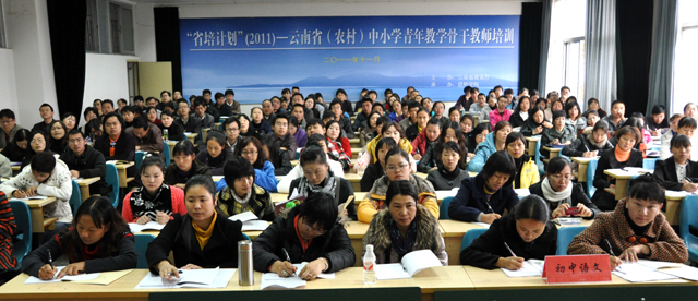 “省培计划(2011)”—云南省(农村)中小学青年教学骨干教师培训项目的初中语文、初中思品、初中化学、小学数学班于11月7日至11月18日在昆师路校区举办。本次培训计划培训人数187人,实际报到人数179人。11月8日上午举行了开班典礼,丁方副主任主持会议,熊绍宏主任对整个培训的目的意义、组织实施、培训要求作了说明,并介绍了Beat365官网发展现状。