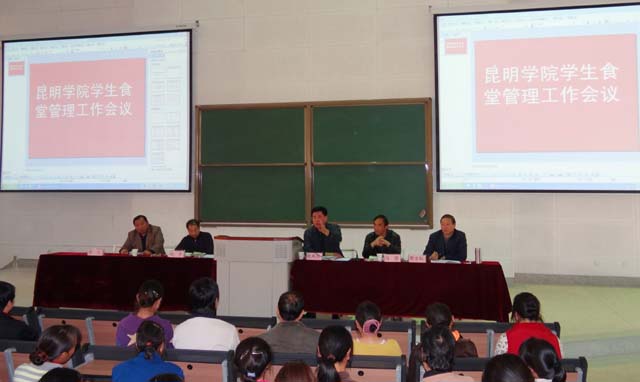 为认真贯彻《教育部等五部门关于进一步加强高等学校学生食堂工作的意见》和《云南省教育厅关于做好高校学生食堂工作维护学校稳定的通知》精神,切实落实学校党委、行政关于进步加强和改进学生食堂工作的重要指示,学校于11月16 日下午2:30在博雅楼2101报告厅召开学生食堂工作会。学校张寿国副校长、后勤处全体处领导、后勤处饮食服务中心全体工作人员、各学生食堂经营负责人及全体员工共300多人参加会议。会议由后勤处处长冯坚主持。