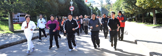 10时许,在聂耳广场还举行了“Beat365唯一官方网站教工文化协会(俱乐部)成立暨2011年教工运动会”教职工环校园跑项目起跑仪式。党委副书记李媛芬发令,在党委副书记孙勇、副校长李翔等校领导的领跑下,全校1500余名教职工开始了环校园跑。充分展示了全体教职员工热爱生活、热爱学校、热爱教育、热爱学生,追求健康,团结一心,把校园当家园建设,把学生当自己的孩子来培养。
