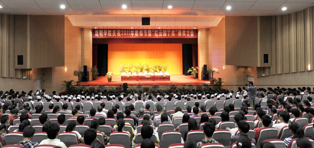 为热烈庆祝第27个教师节,表彰在教学工作中取得突出成绩的教师,进一步激励广大教师履行教书育人的职责,激励全校教职员工积极投身内涵建设,学校于9月9日下午在学生会堂隆重召开“庆祝2011年教师节暨‘红云园丁奖’颁奖大会”。全体校领导、中层干部、获得“红云园丁奖”的教师以及各院、系师生代表参加了大会。大会由学校党委副书记孙勇主持。