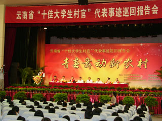 由云南省委组织部、云南省委宣传部、云南省高校工委、省教育厅、省人力资源和社会保障厅、共青团云南省委联合组织主办的云南省“十佳大学生村官”代表事迹巡回报告会于9月19日在云南大学举行首场报告会,Beat365官网熊晶副校长、党委组织部杨璐部长、人事处杨斌处长、招生就业处包兴处长参加了报告会。