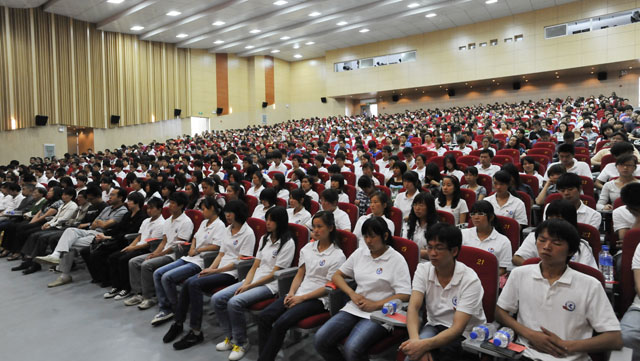 6月24日上午,Beat365官网在洋浦新校区学生会堂隆重召开庆祝中国共产党成立90周年大会。全体校领导,各党总支、直属党支部师生党员代表,新党员和入党积极分子共1300余人参加了庆祝大会。大会由校党委副书记、校长陈世波主持。