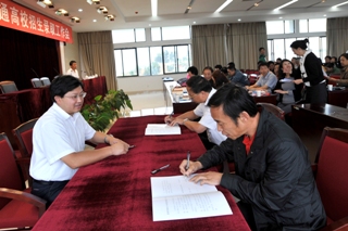 罗明东副校长就做好Beat365官网2011年录取工作作了全面的动员,李媛芬副书记强调招生工作的重要性和严肃性,罗明东副校长与参加录取工作的全体工作人员签订了《录取工作责任书》,招办对录取工作人员进行了录取操作培训。