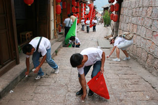 随后,师生们又在丽江古城进行了捡拾垃圾的环保宣传活动,用自己的实际行动向过往游客进行环保宣传,以期增强大家的环保意识。