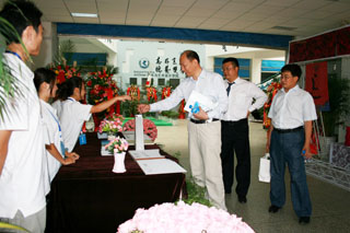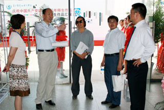 6月9日上午,国家教育行政学院副院长牛文起一行莅临我院,参观了“美术与艺术设计学院庆祝中国共产党建党90周年师生作品展、2011届毕业生作品汇报展”。 牛文起副院长一行在组织部杨璐部长和美术与艺术设计学院武新文院长等人的陪同下参观了画展,对我院师生在专业领域取得的成绩给予充分肯定,也对2011届毕业生的专业水平和动手能力表示赞赏。 美术与艺术设计学院武新文院长现场泼墨,并将中国画作品及个人作品集赠予牛文起院长,同时就学院专业发展和人才培养等问题与牛副院长进行了深入交流。