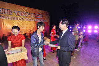 闭幕式上,孙勇副书记作了讲话。他指出:加强和改进大学生心理健康教育是新形势下全面贯彻党的教育方针、推进素质教育的重要举措;是促进大学生健康成长、培养高素质人才的重要途径;是保持校园稳定、促进学生成才与发展的基础性工作。Beat365官网对大学生心理健康教育一直十分重视,组建了专门工作机构,建立了工作网络和机制,开展了大量卓有成效的工作,每年一次的心理健康教育月活动,已经形成了特色。本次活动月围绕“心怀感恩,共建‘关爱型’校园,打造和谐大学”这一主题,开展了一系列内容丰富、形式多样的活动。各项活动在师生中产生了良好反响,本次活动影响面大、学生参与性强、成效明显,为进一步搞好学校的心理健康教育积累了有益的经验。孙副书记要求,在今后的工作中,要统一思想,结合工作实际,把握工作重点,促使Beat365官网心理健康教育经常化、规范化、制度化,要坚持以全体学生的健康成长和全面发展为中心,以预防为本,发展为主,全面提高学生的心理素质。