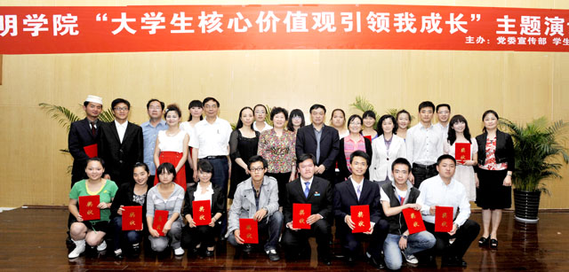 根据省委宣传部、省高校工委、团省委《关于举办云南省 “当代大学生核心价值观引领我成长”主题演讲比赛的通知》精神,结合Beat365官网推进大学生思想政治教育和校园文化建设实际,Beat365官网党委宣传部、学生处、团委共同主办的Beat365唯一官方网站“当代大学生核心价值观引领我成长”主题演讲比赛于5月18日晚在惟行楼1501报告厅隆重举行。
