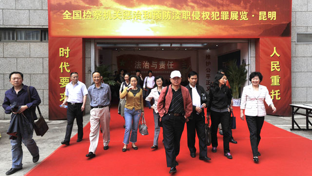 为进一步加强领导干部反腐倡廉教育,提高对渎职侵权犯罪危害性和反渎职侵权工作重要性的认识,5月5日下午,校党委副书记、纪委书记李媛芬带领机关60余名科级以上党政干部,前往昆明市检察院参观全国检察机关惩治和预防渎职侵权犯罪展览。 此次展览由昆明市人民检察院、中共昆明市委宣传部、中共昆明市纪律检查委员会共同主办。展览以“法制与责任”为主题,共分“宗旨•使命”、“ 犯罪•危害”、“ 惩治•成效”、“ 预防•治本”、“ 云南•践行”、“昆明•惩防” “警示•启迪”七个展区,共200多块展板。通过展出近年来省内外职务犯罪的大案要案、罪犯忏悔录等具有代表性的反面典型案例,深刻揭示了职务犯罪的特点、社会现状及其危害性,深入浅出地阐述了当前预防职务犯罪的重要性和必要性。案例翔实、具体、鲜活、震撼心灵,促人深省,每一幅图片、每一件实物、每一段文字都极具教育意义。