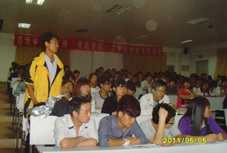 可星老师就大学生创业态度、创业能力、创业领域、创业初期的准备工作进行了深入浅出的讲解,并结合中国大学生创业成功和失败的个案进行透彻的分析。最后可老师结合专业方向对在场有意投身创业热潮的同学推荐了几个可供选择的创业方向,并分析了各个方向的发展前景。