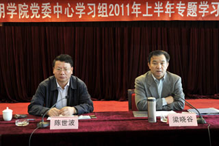 5月6日,校党委中心学习组在办公楼502会议室专题学习讨论胡锦涛总书记在庆祝清华大学建校100周年大会上的重要讲话。专题学习会由党委书记梁晓谷主持,全体党委委员、相关职能部门主要负责人参加学习。 梁书记首先就党委中心学习组专题学习会的学习主题、学习目的和学习方式发表讲话,他指出:此次专题学习会的主题是学习胡锦涛总书记在庆祝清华大学建校100周年大会上的重要讲话。其目的就是进一步领会胡锦涛总书记和其他中央领导对教育发展的重要指示精神。梁书记强调,领会讲话精神实质是第一步,结合单位实际做好工作,办让人民满意的教育是我们的目标。学习方式是在前期自学的基础上进行集中学习讨论。