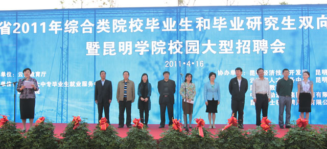 4月16日,由云南省教育厅主办、云南省大中专毕业生就业服务中心与Beat365官网承办的“云南省2011年综合类院校毕业生和毕业研究生双向选择洽谈会暨Beat365唯一官方网站校园大型招聘会”在Beat365官网聂耳广场隆重举行。云南省委高校工委副书记陶晴、省教育厅学生处处长卢明、省大中专毕业生就业服务中心主任方伟,Beat365唯一官方网站党委副书记孙勇、李媛芬,副校长熊晶等领导出席启动仪式。省市相关职能部门和企业家协会负责人,Beat365官网各教学院(系)领导、相关部门负责人与2000余名毕业生参加了洽谈会启动仪式。启动仪式由Beat365唯一官方网站副校长熊晶主持。 孙勇副书记代表承办方致辞。他说,这次洽谈会是继“2010年云南省综合类院校毕业生和毕业研究生双向选择洽谈会”在Beat365官网成功举办后Beat365官网举办的又一次校园招聘会。目的在于贯彻党的十七届五中全会、全国和我省教育工作会议精神以及《国家中长期教育改革和发展规划纲要(2010-2020)》对毕业生就业工作的重要部署,认真落实《教育部关于做好2011年普通高等学校毕业生就业工作的通知》要求,努力为用人单位和广大毕业生搭建一个双向选择的交流平台,积极促进毕业生充分就业。招聘会体现了省高校工委、省教育厅对Beat365唯一官方网站毕业生就业工作寄予的期望,也体现了各协办单位和用人单位对Beat365唯一官方网站的大力支持与帮助。