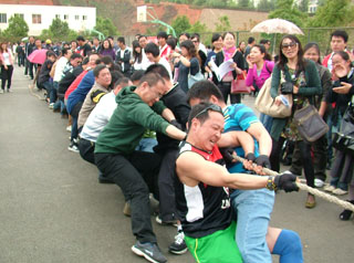 此次拔河比赛拉开了校工会为庆祝“五一”国际劳动节迎接建党九十周年系列活动的序幕。校工会为配合学校开展庆祝建党九十周年活动,还将开展教职工才艺作品展、红歌比赛等系列活动。