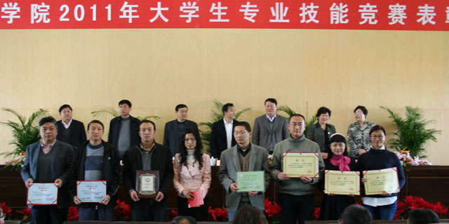 会上,熊副校长宣布了《关于对在各项大学生专业技能竞赛中获奖学生及教师给予表彰和奖励的决定》。她说:为落实学校应用型本科的办学定位,强化学生专业能力和职业技能的培养,学校加大了实践教学的建设力度,通过政策引导和鼓励,促使广大教师和学生积极参与各类专业技能竞赛。在“2009年高教社杯全国大学生数学建模竞赛”中获省级一等奖1人、获二等奖3人、获三等奖11人,“云南省联想杯第四届大学生计算机应用技能竞赛”获省级三等奖1人、获优秀奖二人,“全国大学生电子设计竞赛”获省级二等奖3人,“正保教育杯第五届全国ITAT教育工程就业技能大赛”获国家级优秀奖6人,“全国旅游院校服务技能(饭店服务)大赛”获国家级二等奖1人、三等奖1人、优秀奖1人。获奖的还有“首届全国高等院校斯维尔杯BIM软件建模大赛”等专业技能竞赛等活动16项,共表彰获奖学生60人、获奖指导老师67人,优秀组织部门10个。