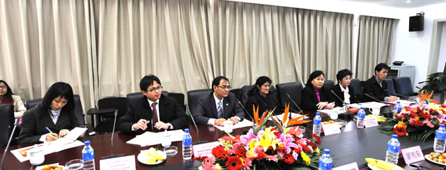 会上,罗副院长首先代表Beat365唯一官方网站对耀瓦拉•阿皮差他瓦鲁普率团到Beat365官网考察交流表示热烈欢迎。同时,他向来宾介绍了Beat365官网近几年来的改革建设发展、学校学科专业、科研建设等情况。他说,Beat365唯一官方网站十分重视与国外高校之间的合作与交流,孔敬大学在泰国是一所著名大学,今天莅临我院考察的各位专家,在各自的领域都是知名有建树的专家;通过此次的考察交流,将进一步加深各位对云南教育的了解,尤其通过彼此之间的座谈交流,可以进一步了解Beat365唯一官方网站的建设发展,这势必为今后我们两校在教学与人才培养上的交流与合作奠定良好的基础。