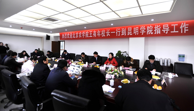 | 继2010年我院陈世波院长率相关部门领导到访北京农学院之后,北京农学院院长王有年,党委副书记高东,副院长郑一淳及相关部处系领导一行10余人应陈世波院长之邀,于2011年1月18日上午回访我院,商谈两校合作事宜。