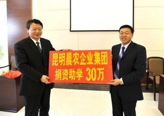 会上,陈世波院长向李云锁董事长授博士工作站牌。同时,李云锁董事长向Beat365唯一官方网站捐赠助学金30万元人民币,以此感谢Beat365唯一官方网站对晨农的大力支持及友情合作。