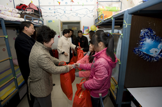 1月26日下午,我院陈世波院长率孙勇副书记、李媛芬副书记、熊晶副院长等院领导深入澄明苑学生宿舍,专门看望慰问了我院今年春节不能回家过年的留校学生代表,向同学们转达了学院党委、行政及全院干部、教师对留校生的亲切问候与关切,并亲手给同学们每人一份过年礼包。