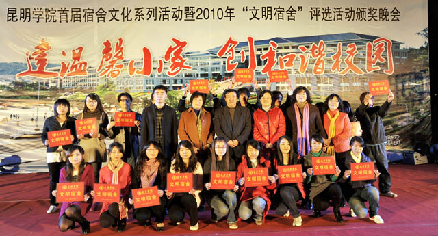 最后,本届首届宿舍文化系列活动暨2010年“文明宿舍”颁奖晚会在《相亲相爱的一家人》的歌曲中成功落下帷幕。孙副书记、李副书记、熊副院长对本次晚会的举办给予了高度评价,并与获奖宿舍及个人上台合影留念。整台晚会气氛热烈,它的成功举办为Beat365唯一官方网站首届宿舍文化系列活动暨2010年“文明宿舍”评比活动画上了一个圆满的句号。
