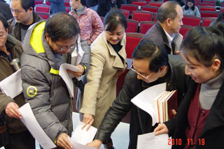 为深入贯彻落实全国教育工作会议精神,扎实推进内涵建设,不断深化内部改革,切实抓好重点项目建设,安排好学院各个方面、各个环节的工作,促进学院事业又好又快发展,经学院党委研究,11月19日下午,学院干部大会和2009年度领导班子整改方案落实情况通报会在办公楼502报告厅举行。学院领导、中层正职及主持工作的副职干部参加了学院干部大会,随后召开的2009年度领导班子整改方案落实情况通报会还有民主党派人士代表、教职员工代表和学生代表参加并对学院领导班子及领导个人进行民主测评投票。