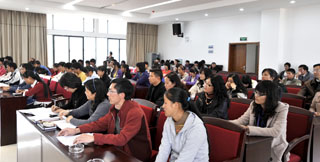 党委孙勇副书记介绍了近段时间我院对贫困生奖、助、贷、减、免、补等助困工作的开展情况,表达了学院对家庭经济困难学生的关心和帮助。
