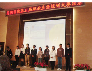 11月12日下午,为提高学生职业发展的自主意识,提升学生就业能力和打造生涯管理能力,激发学生自主创业激情,由招生就业处组织的我院第三届职业生涯规划大赛决赛在图书馆二楼报告厅拉开帷幕。云南省大中专毕业生就业服务中心主任方伟,我院招生就业处副处长杨跃、何云仙老师,学生处副处长罗进,各院系领导及各系老师和学生代表观看了本次比赛。