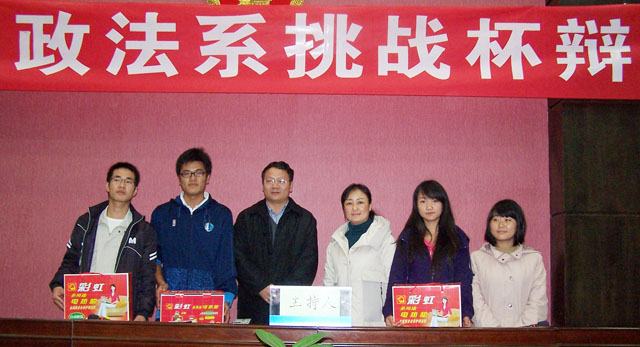 当晚,参加决赛的四个代表队均做了充分的准备,双方激烈的争辩使本次比赛精彩异常,扣人心弦。最终,2010级思想政治教育2班获得本次辩论赛的冠军。2010级的何怡等4位同学获得最佳辩手。陈世波院长亲临现场为获奖的同学颁奖并合影留念。