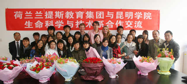 11月9日,来自荷兰兰提斯教育集团的3名交流大学生与我院生科系08级园艺技术班的同学进行了花文化交流。