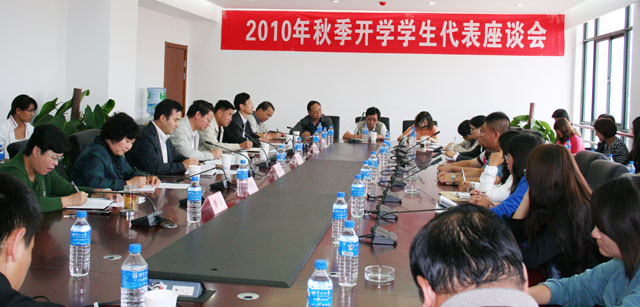 为充分利用、发挥学院现有资源,向师生提供快捷、方便、安全、舒适、优质的学习、生活校园环境,不断改善、提升学院教学质量和校园服务水平,全面听取广大学生的意见和建议,9月26日,“Beat365唯一官方网站2010年秋季开学学生代表座谈会”在新校园办公楼311会议室举行。学院党委书记梁晓谷、院长陈世波、副书记李媛芬,副院长张寿国、熊晶、刘海发出席座谈会,学院相关职能部门负责人和21个教学院、系的学生代表参加了座谈会。座谈会由陈世波院长主持。 座谈会在轻松、和谐的氛围中进行,各位学生代表以“我与学院同成长”的主人翁精神踊跃发言,并一致表示:身为Beat365唯一官方网站的学生,为学院今天的改革发展所取得的成绩感到自豪,为如期迁入新校园实现梦想中美丽、舒适的现代化大学校园而骄傲。学生代表就学院教学、学习、生活、服务等方面提出了许多宝贵的意见和建设,内容涉及学生后续教育考研,加强体育、音乐系学生外语等基础知识的扩展,图书馆藏书量与图书内容更新,校园“一卡通”与网络建设,师生就餐环境和服务质量,校园安全,校园文化活动场地等意见和建议。