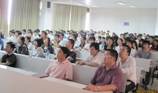 参加报告会的有物理科学与技术系的系主任戴祖诚、党总支副书记赵庆江、系副主任何松林及全系教师,物理科学与技术系300余人及其他系慕名而来的学生约400人认真听取了王海博士就第三代太阳能电池方面的学术报告。