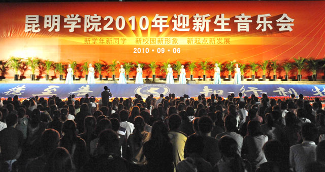 为热烈欢迎2010级新生入学,帮助他们尽快熟悉校园,适应新的大学生活,增加新生对学院的了解与热爱,9月6日晚,学院专门为2010级新生组织迎新音乐晚会。学院党委书记梁晓谷,副书记孙勇,副院长罗明东、刘海发、董建华,相关职能部门、系负责人出席了晚会,5000多2010级新生及部分老生观看了音乐会。 本次音乐会由音乐系承办,学生处、院团委、党院办、保卫处给予了极大的支持。音乐会受到了学院领导及观看师生的欢迎和好评。