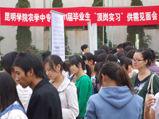 此次招聘会的顺利举行,农学中专部花了大力气、下了大功夫,从6月份起即着手制定完善2011届毕业生顶岗实习工作方案,相关科室及人员利用暑假多方联系各用人单位,拓展实习岗位3000余个,并于新学期开学期间(8月30日—9月2日)进行为期4天的顶岗实习前培训,从学生实习期间双重身份的管理要求到个人安全,对他们进行了全面系统的教育;同时,按照《云南省财政厅 云南省教育厅 中国保监会云南监管局关于认真做好中等职业学校学生实习保险工作的通知》“真正做到中等职业学校参加实习的学生人人参保,应保尽保,促进中等职业教育健康发展”的要求,经学院领导审批同意后,于近期为所有2011届毕业生办理好顶岗实习保险。招聘会的举行为实施中等职业教育“工学结合、校企合作、顶岗实习”办学要求,提高学生的专业技能、岗位能力搭建了较好的实践平台,为学生下一步的顺利就业、自主创业打下了坚实的基础。第二批顶岗实习招聘会(主要为非涉农专业毕业生举办)拟于2010年11月份举行。 |