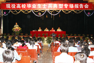 5月21日,我院在昆师路校区礼堂举办“现役高校毕业生士兵典型专场报告会”,这是继我院5月13日举办“Beat365唯一官方网站2010年大学毕业生入伍预征宣传讲座”后的第二场入伍预征宣传动员报告会。全院各系600多名学生及辅导员、招就处老师参加了报告会,报告会由招就处何云仙老师主持。