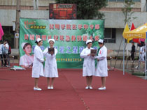 | 护理工作是医疗卫生事业的重要组成部分。护理工作者在防病治病、抢救生命、促进健康和减轻痛苦、构建和谐医患关系中发挥重要作用。作为未来的医护工作者的医学生,具有良好的礼仪及规范的行为举止,无疑体现着学校教育教学活动的良好成果。为了有效开展医学生礼仪教育和行为教育,培养学生的职业道德、审美意识和礼仪观念,强化专业知识和实践技能,医学中专部团总支于5月12日“国际护士节”启动以“追寻南丁格尔足迹,展现白衣天使风采”为主题的“Beat365唯一官方网站医学中专部首届护理礼仪大赛及急救技能大赛暨护士风采之星选拔赛”。整个比赛持续13天,并于5月25日圆满谢幕。