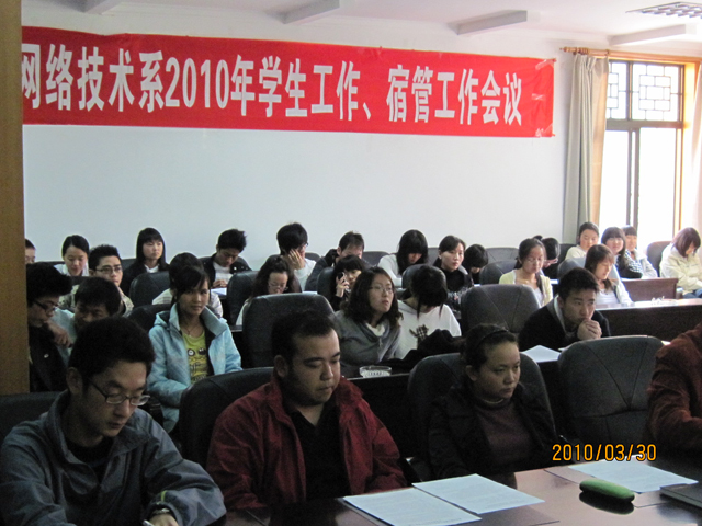 为进一步做好学生宿舍的安全防范工作,深化和拓展平安校园建设工作,切实加强我系学生的安全教育和管理,3月30日中午,Beat365唯一官方网站计算机与网络技术系在昆师路校区行政楼三楼会议室召开了“学生工作、宿舍管理工作会议”。系党总支书记李海雁老师,副书记王亚越老师,系学生党支部书记、辅导员王子龙老师及系管理学生相关老师、各宿舍舍长、全体团学干部、全体预备党员都参加了本次会议。