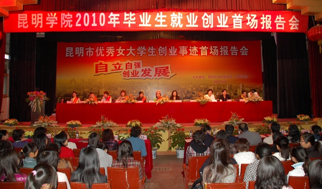 为培养大学生创业意识,提高大学生创业能力,实现以创业带动就业和纪念“三八”国际劳动妇女节100周年,3月6日我院与昆明市妇联在昆师路校区共同举办首场“昆明市优秀女大学生创业事迹报告会”暨“Beat365唯一官方网站2010年毕业生就业创业首场报告会”。