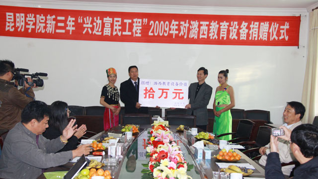 1月9日到10日,学院“兴边富民工程”工作小组在刘海发副院长带领下到潞西市开展工作。 1月9日上午,学院新三年“兴边富民工程”2009年设备捐赠仪式在潞西市政府举行。潞西市岳副市长、教育局杨局长和发改局、政府办公室、教育科研中心相关领导,学院刘海发副院长和职业技术教育中心、资产管理与设备处、院长办公室负责同志,以及部分曾到Beat365唯一官方网站参加培训学习的教师参加仪式。捐赠仪式由潞西市政府办公室副主任刘宏春主持。