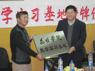 罗副院长代表Beat365唯一官方网站在教学实习基地协议书上签字,将“Beat365唯一官方网站教学实习基地”牌正式授予昆明市第二十四中学,并对教学实习基地建设和管理作了重要讲话,他认为中学教学实习基地是Beat365唯一官方网站师范教育与基础教育的纽带和桥梁,希望计算机与网络技术系与二十四中保持经常联系,派一线教师到二十四去听课、上课、作学术讲座,了解中学教育的真实情况,同时请二十四中信息技术课教师到Beat365官网任课、开展教学研究或作学术讲座,指导计算机与网络技术系的教学教研工作,开展全方位多角度的交流与合作,发挥实习基地建设过程在教学改革及网络教学平台等方面的重要作用,突出培养学生“综合素质高、专业能力强、职业技能优”的基本规格,强调培养的人才要上手快、后劲足、适应性强,建一个集教学实习、教学研究和社会服务于一体的有特色的教学实习基地。