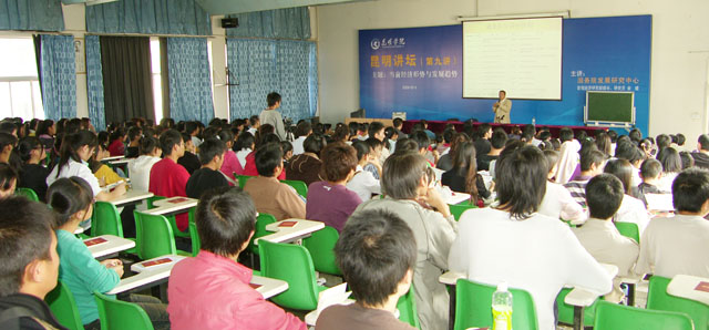 本次讲座也是云南省教育厅在全省高校开展“贤士榜助飞梦想——促进就业系列活动进校园”的活动之一,由亨德森外国语培训学校校长亨德森•杨先生主讲。杨先生用自己的亲身经历及对人生的感悟给我院2010届毕业生上了一堂生动的就业指导课。杨先生讲了三个问题:一、给自己定位,定位要适合自己,要利国、利民、利己,定位不是学什么就一定要干什么,要根据社会需求;二、要选择适合自己的职业,选择职业要去有发展空间,有利于自己成长的中小企业,刚出校门的大学生不要先讲报酬,要以适应社会、学习、历练自己为主;三、做好就业准备,要提前进入就业准备,不管是实习还是兼职,都是了解社会,提前做好就业准备有利于顺利就业。接着,杨先生回答了老师和同学们关于出国留学、创业、现代教育等有关问题。同时,杨先生还准备招收我院毕业生到该培训学校就业。届时,我院将与亨德森外国语培训学校共同举办招聘会,为毕业生提供就业岗位。