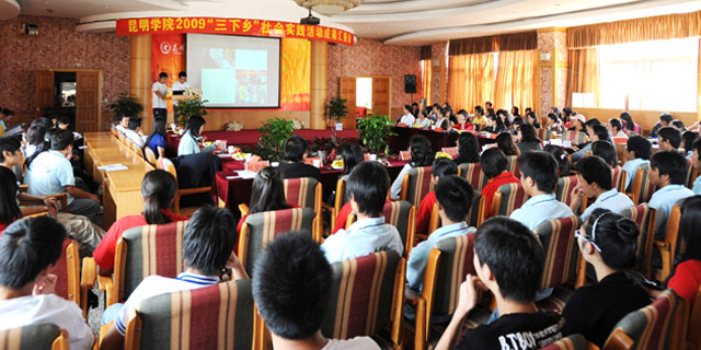 10月16日下午,院团委2009年“三下乡”社会实践活动成果汇报会在人民西路校区举行。团市委机关党总支书记王彦彦,团市委学校部部长栾丽华,学院党委宣传部张立新部长,教务处郝旭霞处长,机关党总支梁艳萍书记,保卫处方永昆副处长,学生处罗进副处长等出席了汇报会,会议由团委书记何昊宸主持。 我院本次“三下乡”根据党委宣传部、学生处、院团委联发的《关于开展Beat365唯一官方网站2009年大学生暑期社会实践活动的通知》的文件精神,于7月上旬正式启动,历时7天。活动以“高扬爱国主义旗帜、服务科学发展大业”为主题,本着“讲求实效、就进就便、针对性强、辐射面广、安全第一”的原则,按照“全面动员、普遍参与、点面结合、重点突破”的要求,以系为单位,结合本系专业特色,学院共组织了6支志愿服务队到昆明周边县市区基层农村开展社会实践与志愿服务活动。 汇报会上,来自自机系、旅游系、生科系、经济系、计网系、政法系的老师和学生代表,分别对此次“三下乡”社会实践活动作了汇报与成果展示。各汇报系结合系部的专业特色,开展的实践活动形式多样、成果丰富,能够用理论指导实践,用调研成果服务农村、服务社会、服务昆明的实践活动。 党委宣传部部长张立新代表学院活动领导小组讲话肯定:6个系的汇报都反映出了此次社会实践主题突出,准备充分,各系领导和相关老师高度重视,积极支持,责任心强,有的亲自带领学生到农村指导调研服务;各系结合专业特长开展科学发展观政策、普法、科普、环保宣传,进行家电维修、爱心捐赠、社会调研、参观访问、劳动体验、文体活动等,既充分认识社会和乡情,也找正自己的角色位置,以我所能服务社会,为今后发展积累经验,为学院服务地方经济发展,锻炼培养了师生干部,宣传展示了学院办学实力和育人水平,与地方建立良好合作关系,做出实绩。衷心感谢团市委领导和相关处室领导的关心支持,衷心感谢6支小分队的系领导、老师、同学的艰苦努力和辛勤奉献。 会上,团市委机关党总支书记王彦彦作了重要讲话。王书记对我院的“三下乡”社会实践工作给予了充分肯定,她指出,我院的“三下乡”社会实践活动准备充分、成果丰富,特别是通过这次活动让同学们了解了社情民意,倾听到了基层人民群众的心声,找到了奋斗和努力的方向,确实增强大学生服务社会、报效祖国责任感和使命感,发现问题、分析问题、并解决问题的能力得到了进一步的提高,砥砺了品格、磨练了意志、收获了真知、陶冶了情操、树立了理想。这次社会实践活动既是一次同学们了解社会、服务社会的尝试,更是一次理论与实践相结合的马克思主义的第二课堂。 此次“三下乡”社会实践活动是学院团委认真学习贯彻十七大精神,深入开展学习实践的科学发展观活动的重要举措,也是加强和改进大学生思想政治教育、帮助大学生在实践中深刻理解科学发展观重大意义、发挥大学生人才智力优势、服务新农村建设的有效途径。相信此次活动的开展,将为大学生体验农村、融入社会搭建平台,为我院团学工作的不断推进和现代新昆明建设贡献力量。