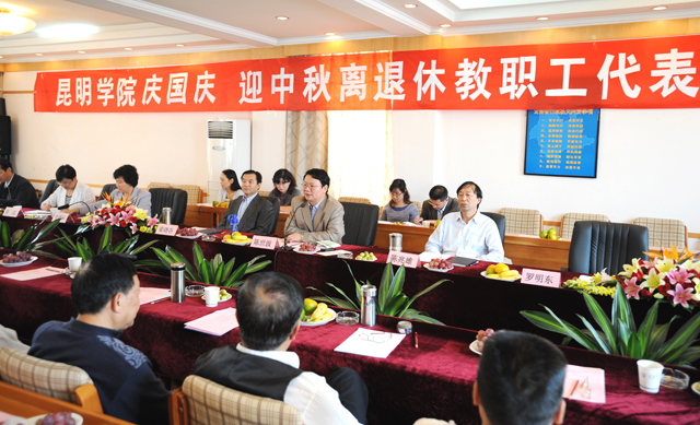 9月25日上午,我院迎国庆、庆中秋离退休教职工代表座谈会在人民西路校区办公楼四楼大会议室召开。院党政领导、党办、院办、组织部、宣传部、工会、人事处、离退休处等有关职能部门负责人以及离退休教职工代表、离退休党组织、群众团体负责人和离退休支部书记等40余人参加了此次座谈会。座谈会由党委李媛芬副书记主持。